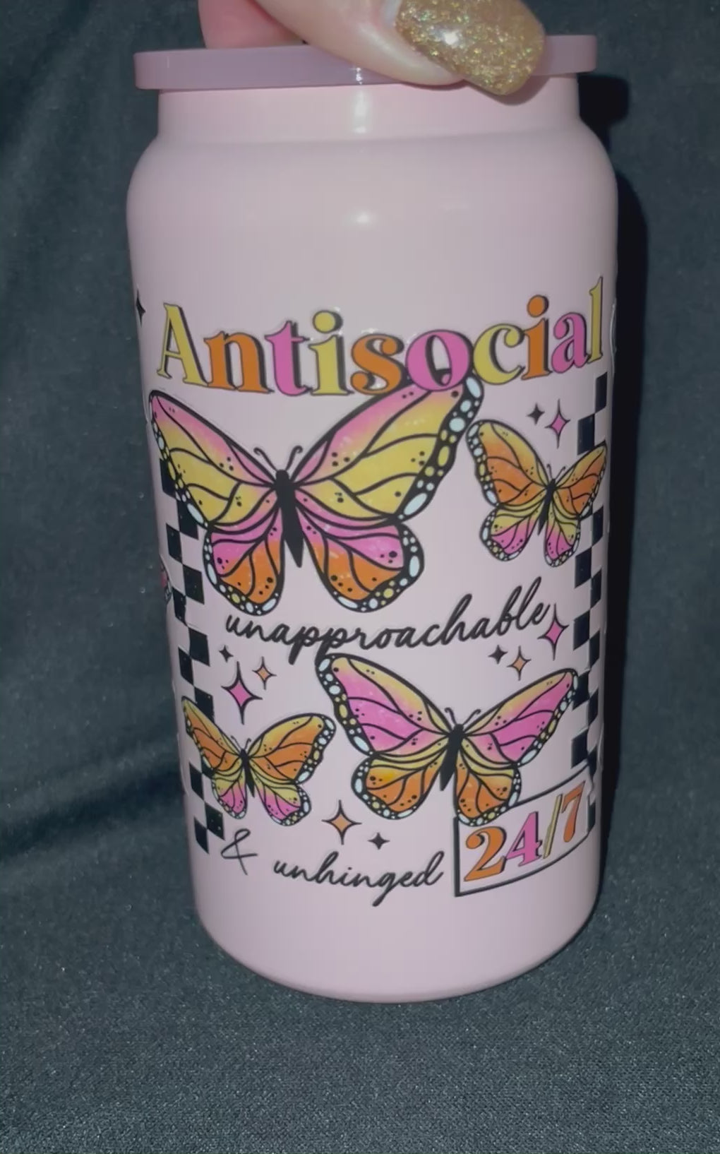 16 oz Stainless Steel Cup with Permanent Vinyl Design. Comes with lid and straw.