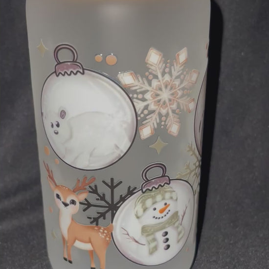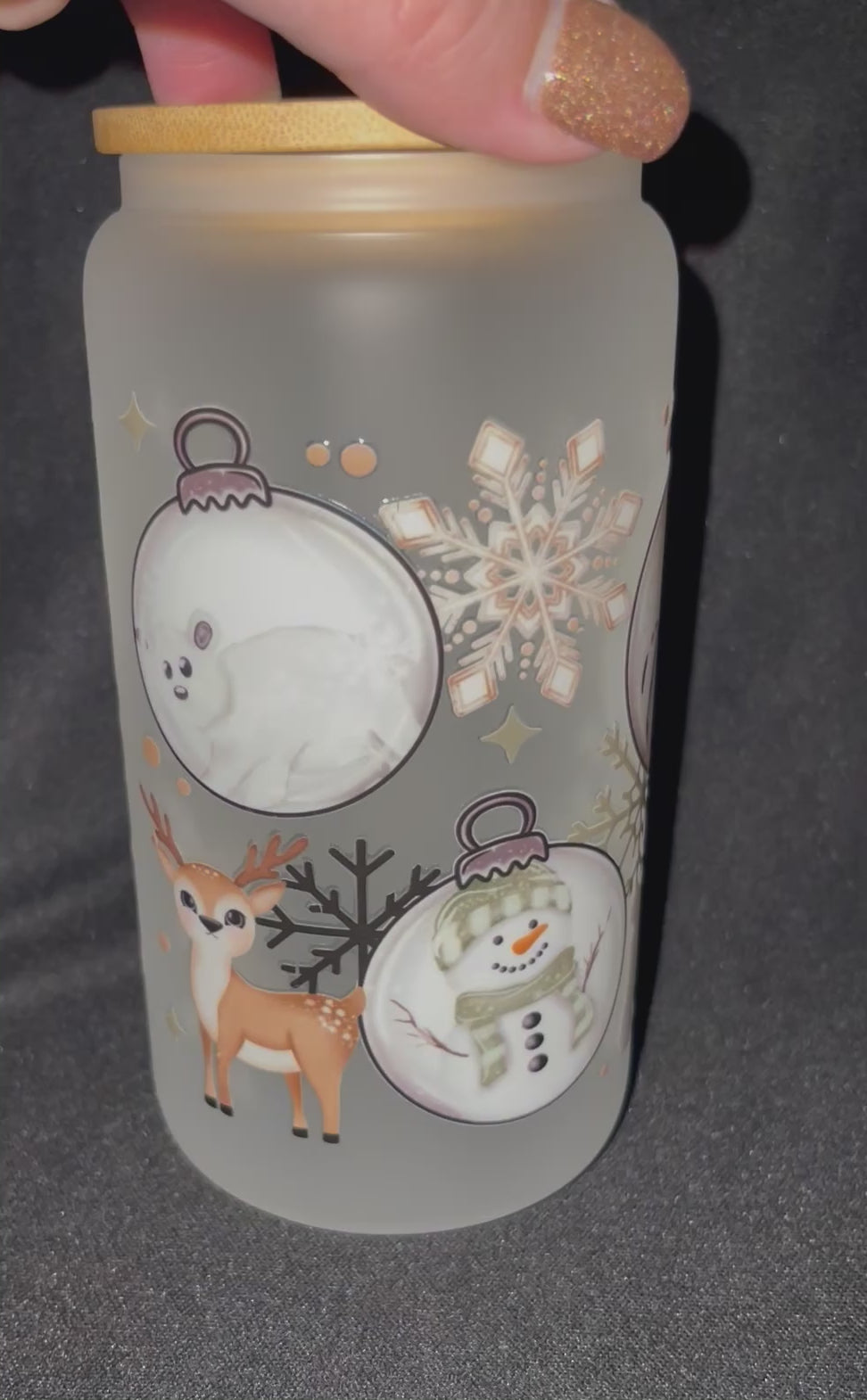 16oz Libby Glass with Permanent Vinyl Design. Comes with bamboo lid and straw.