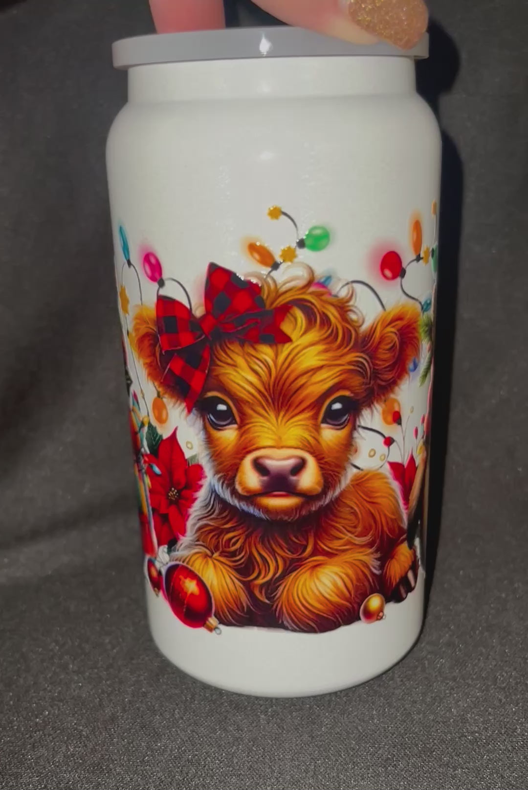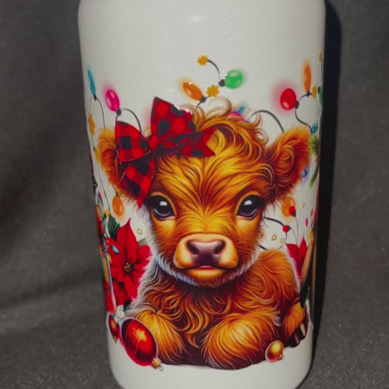 Christmas Highland Cow 16 oz Stainless Steel Cup