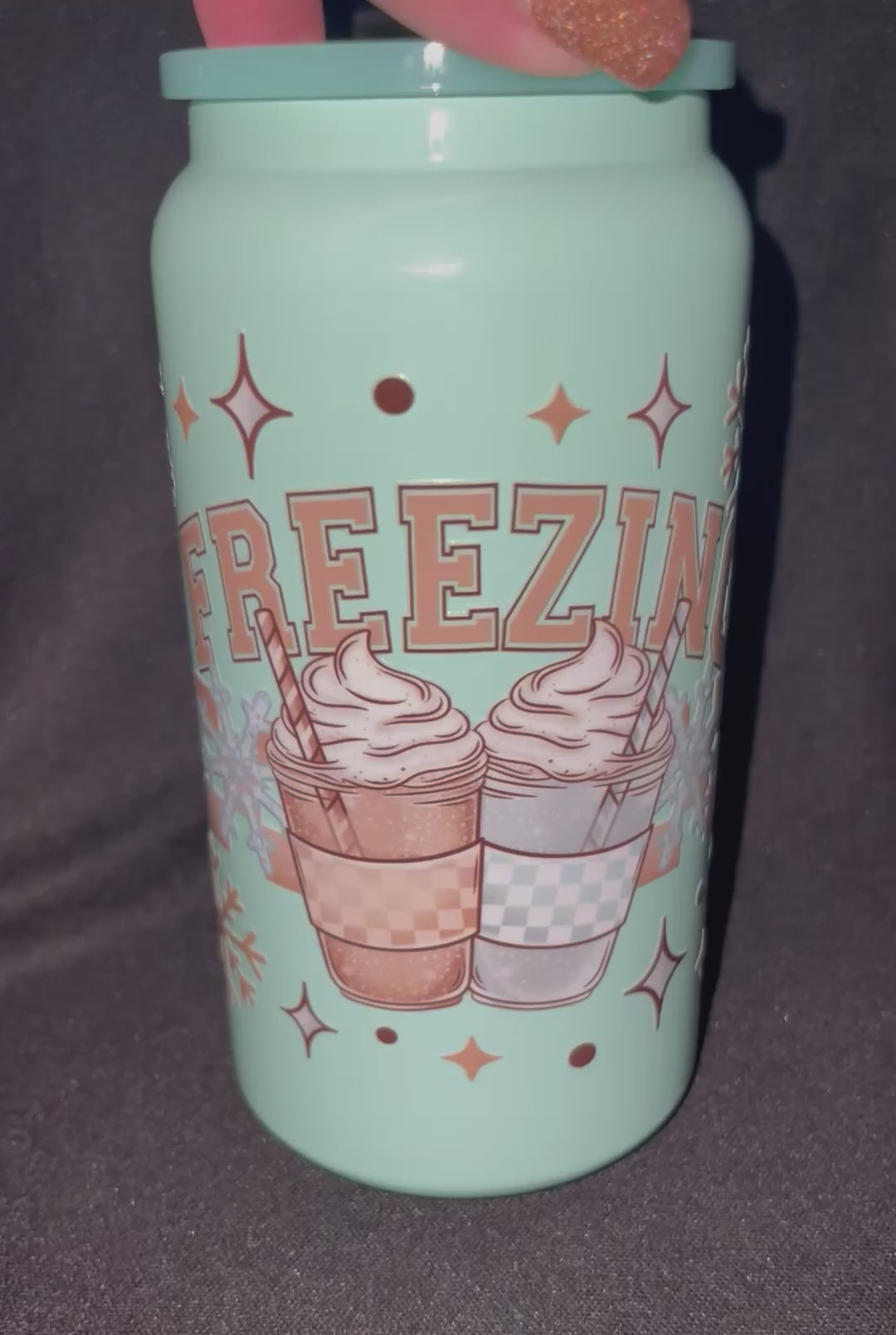 16 oz Stainless Steel Cup with Permanent Vinyl Design. Comes with lid and straw.