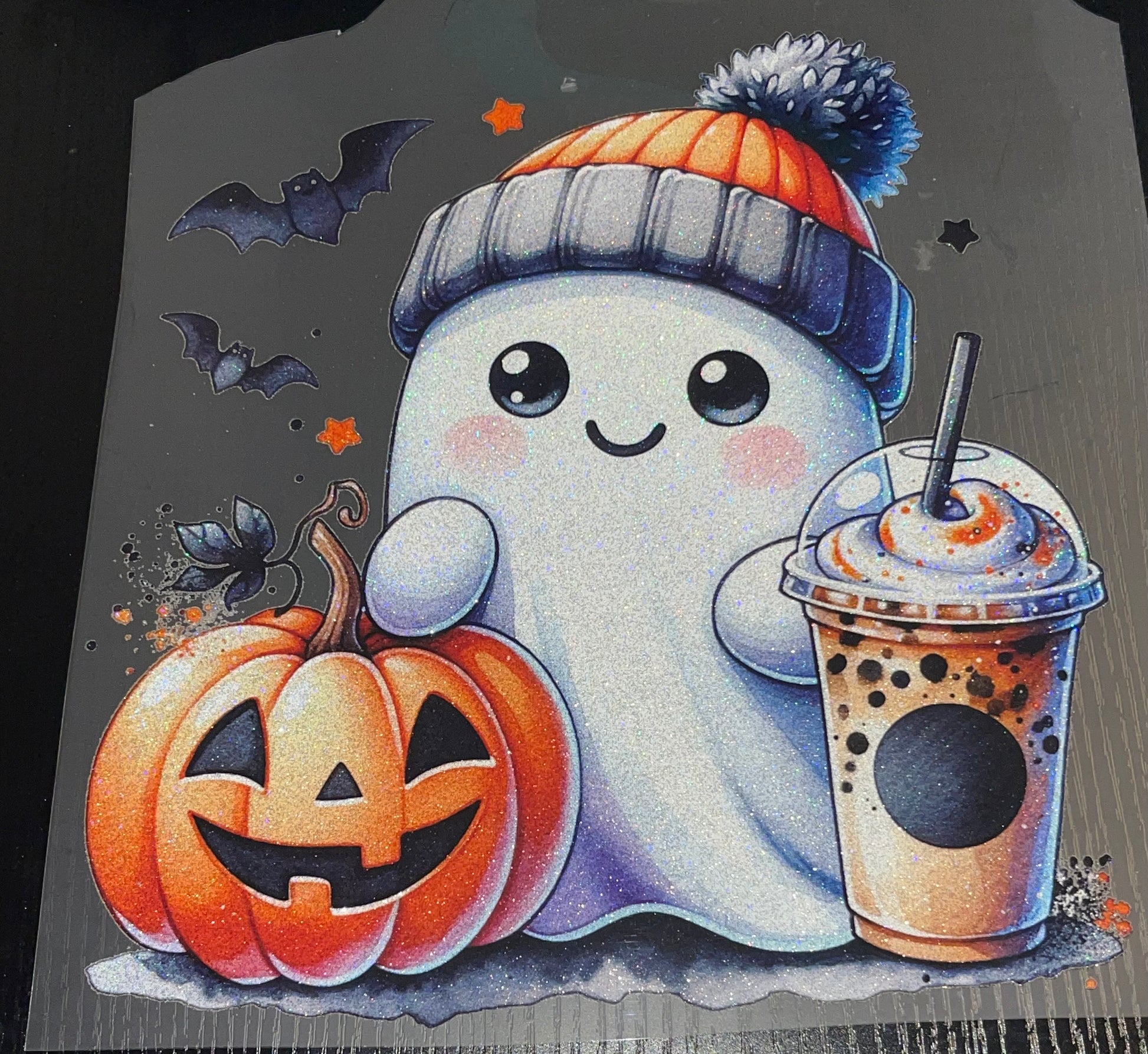 Ghost with Pumpkin & Drink Glitter Screen Print