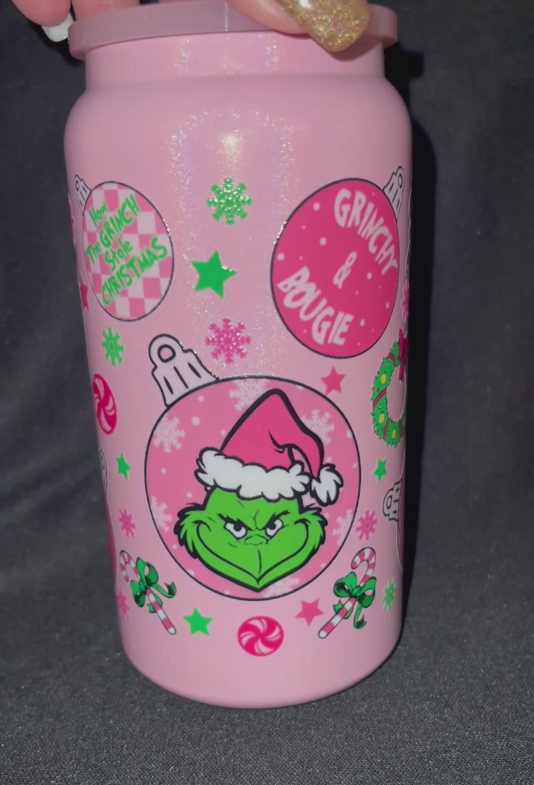 16 oz Stainless Steel Cup with Permanent Vinyl Design. Comes with lid and straw.