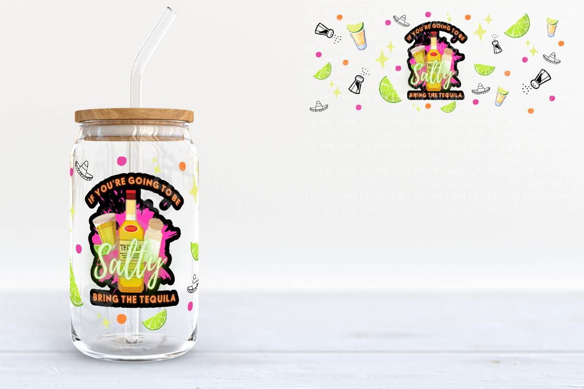 16oz Libby Glass with Permanent Vinyl Design. Comes with bamboo lid and straw.