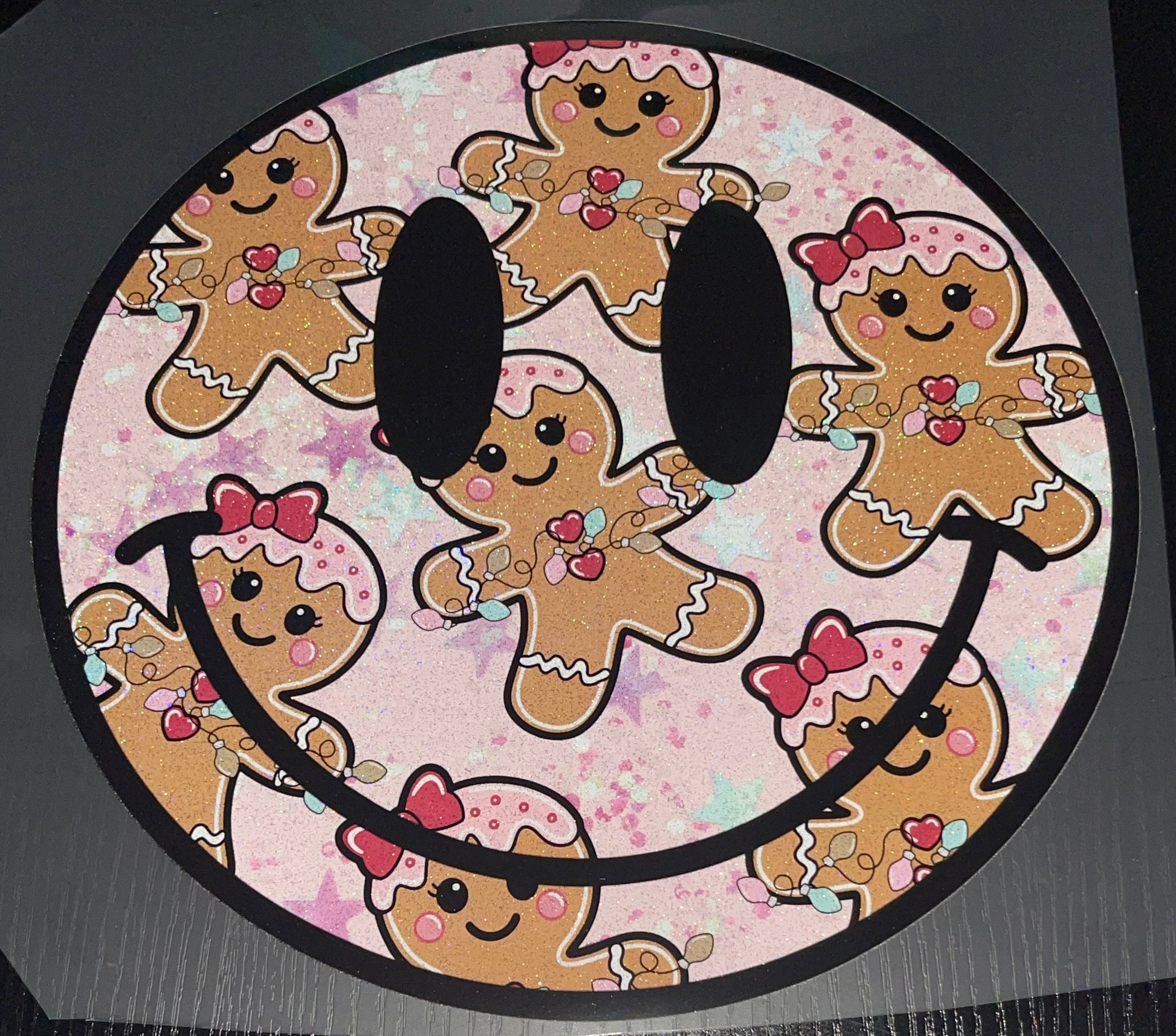 Pink Gingerbread Smiley Glitter Screen Print