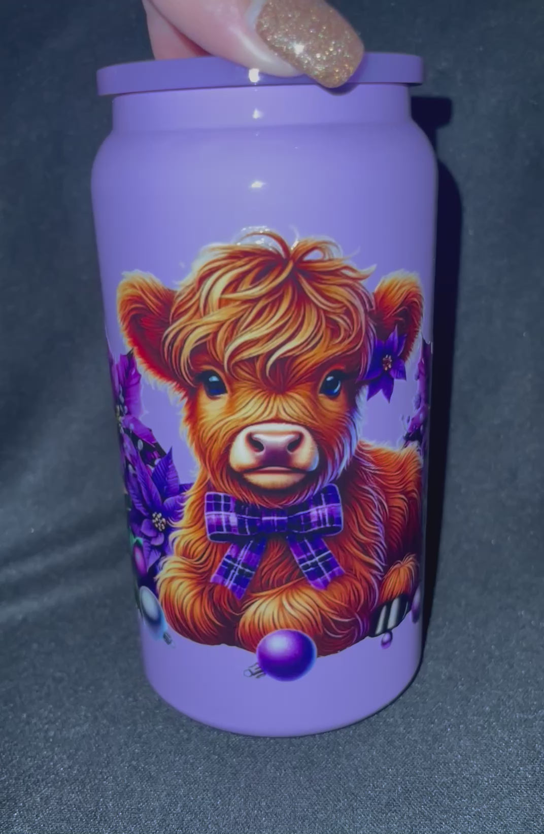 Purple Highland Cow 16 oz Stainless Steel Cup