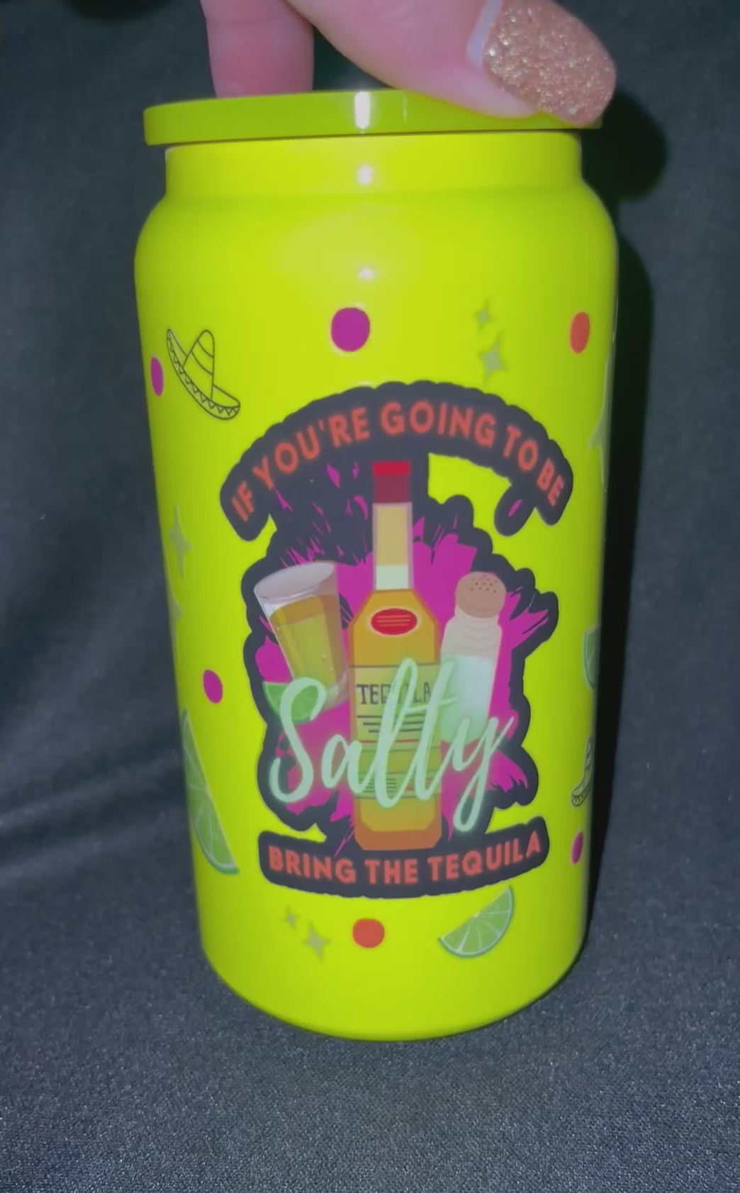 16 oz Stainless Steel Cup with Permanent Vinyl Design. Comes with lid and straw.